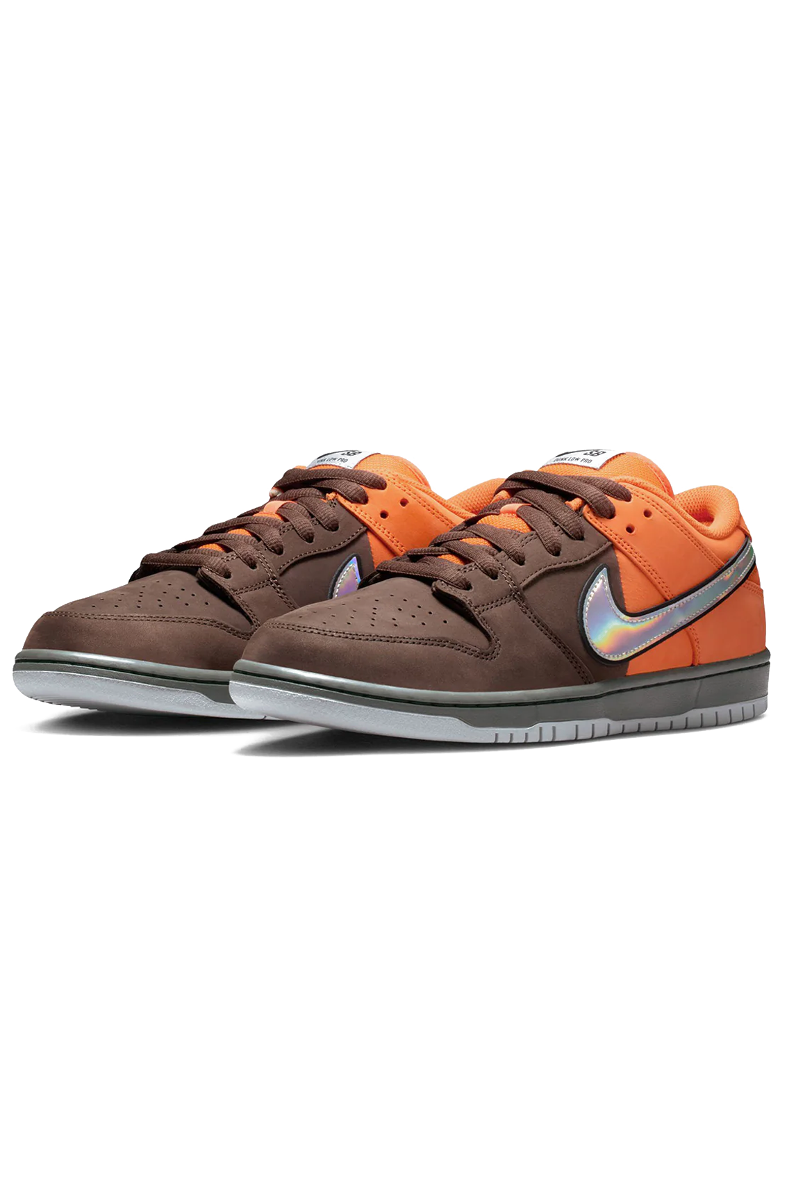 Inspired by San Francisco's iconic MUNI transit system, the Nike SB Dunk Low Pro Premium "MUNI Fast Pass Orange" delivers bold street style with skate-ready performance. The split suede upper combines vibrant orange and rich brown tones for a distinctive look, while grey side logos with black outlines create sharp visual contrast. Two-tone sole detailing completes the cohesive design from heel to toe. Whether you're hitting the pavement or the park, this standout sneaker merges everyday wearability with the durability skaters demand.